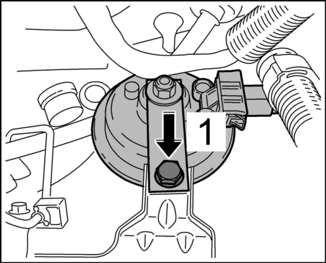 2. Прикрутить звуковой сигнал винтом крепления -1- к кронштейну. → момент затяжки: 23 Nm