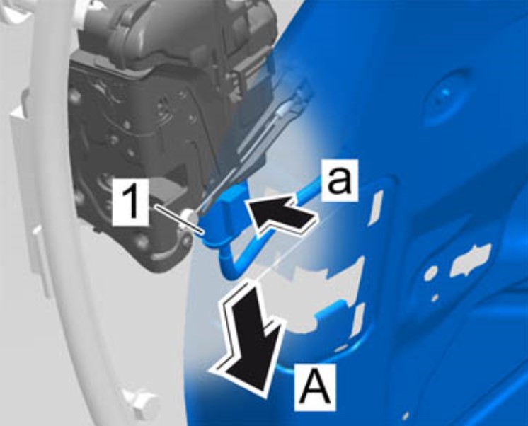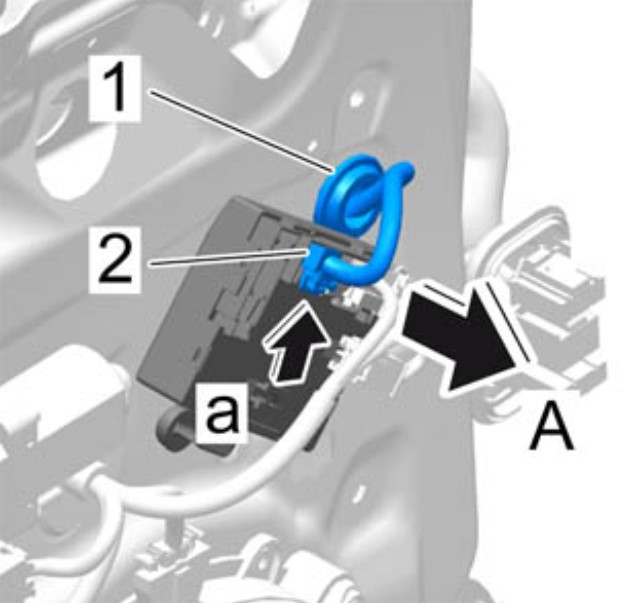 11. Разблокировать электрический разъем -1- -a- и отсоединить его от замка двери -A- .