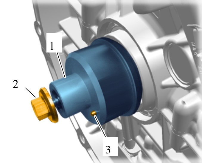 2.1. Установить центрирующее приспособление -1- на фланце коленчатого вала.
