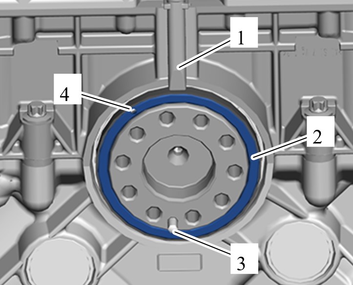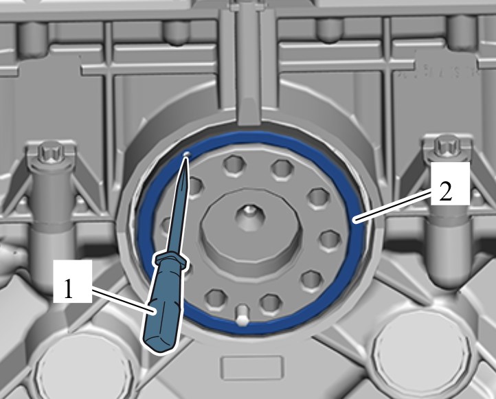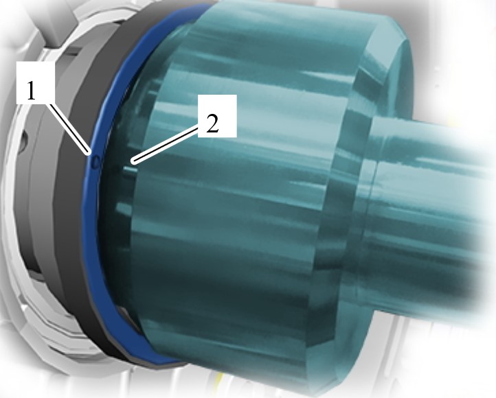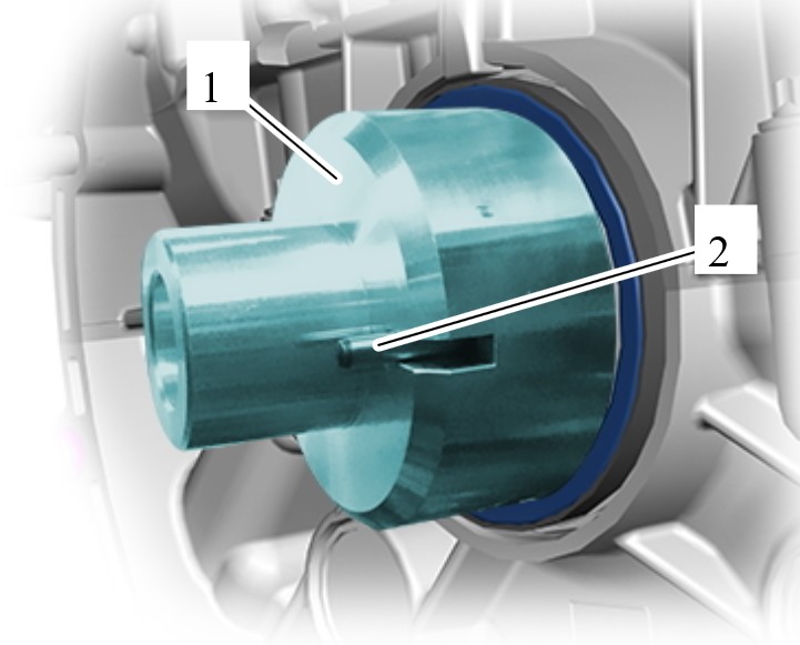 4. Вставить центровочный штифт -2- в метку ВМТ -1- на роторе датчика Холла.