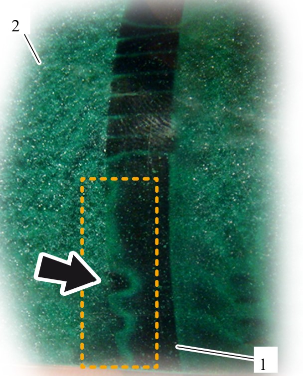 3.1. При наличии повреждений ротора датчика Холла полосы -стрелка- не видны.
