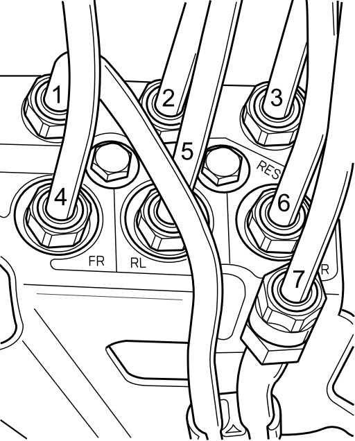 Из под гайки будет травить? Которая со шлангом в блок клапанов вкручивается. А то такое подозрений что на желтом шланге резьбу провернул или сорвал в самом блоке клапанов (задняя правая стойка), крутил ее и так и не закрутил, на заглушенной машине есть там давление? Красным отметил.