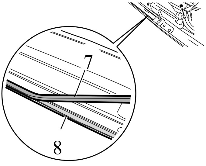 5.1. Отрезать уплотнительную полосу -7- в опорной области так, чтобы получился стык в 45° -стрелка- .