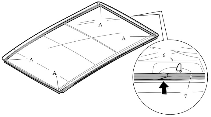 5.2. Свободно приклеить уплотнительный элемент -7- в области углов -A-.