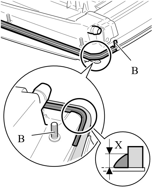 6.1. Нанести герметик на внутреннюю сторону уплотнения в области между винтами -B- . 00004320676 → Герметик → Высота слоя: 4 mm