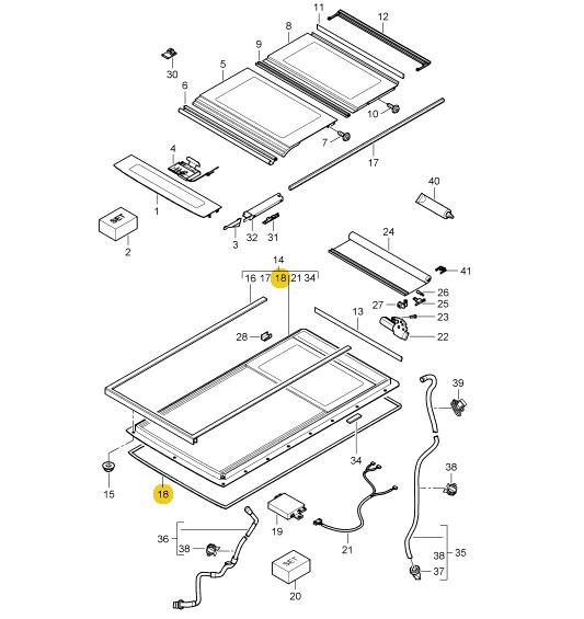 1. Уплотнительные элементы -9- и накладку -10- модуля крыши необходимо проверить на наличие повреждений. При необходимости заменить уплотнение/накладку.