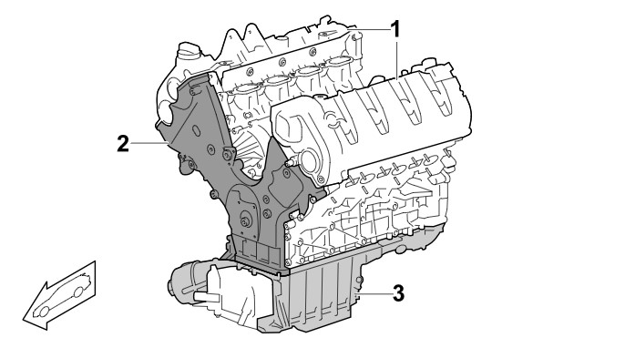 3 - Кожух маслопровода 2WD из магния; масляный поддон состоит из различных слоев стали; теплообменник масло-ОЖ состоит из алюминия; кожух маслопровода 4WD изготовлен из алюминия