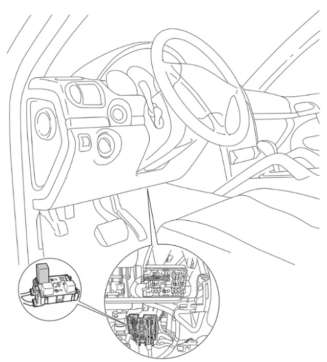 2 Вынуть блок управления из держателя реле -стрелка-.