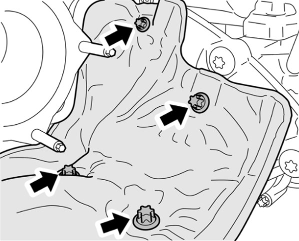 1 Отвернуть четыре крепежных винта экрана главной передачи.