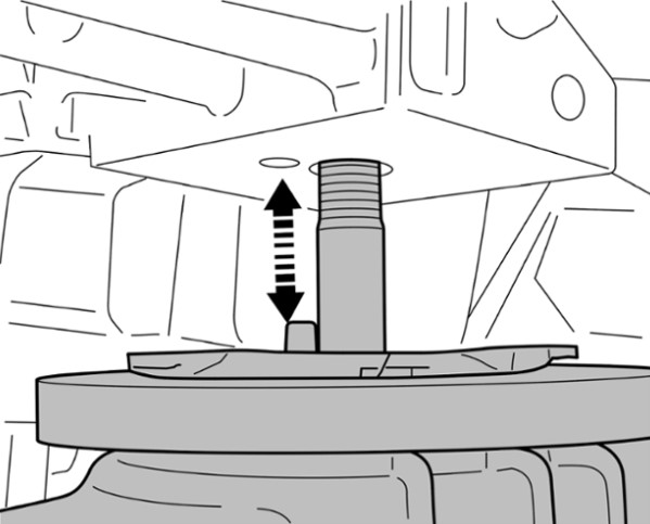2 Ввести направляющую цапфу опоры двигателя в предназначенный для нее паз таким образом, чтобы она более не могла выйти.