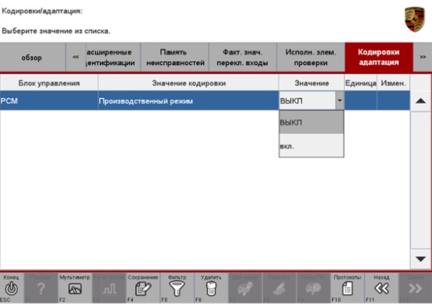 2.3 Кодировочное значение “Режим производства” в блоке управления ‘PCM’ должно быть установлено на значение ‘выкл’ (Рис. 1).