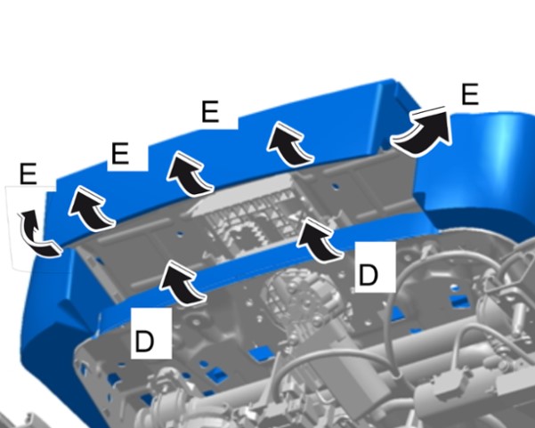 7 На автомобилях с удлинением подушки сиденья: отцепить обивку на элементе удлинения поверхности подушки сиденья -E-.