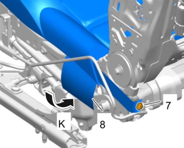 11 Зафиксировать крепление -6-, работая снизу -J-.