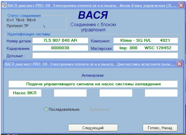 А насос рециркуляции системы охлаждения двигателя включается через исполнительные элементы диагностического оборудования?