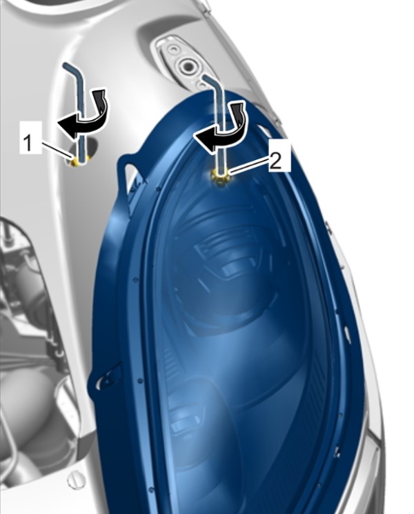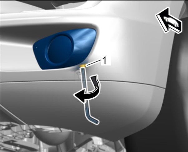 5.1 Выполнить регулировку границы света-тени по высоте с помощью длинного шестигранного ключа 6 мм снизу через облицовку передней части кузова на регулировочном винте -1-.