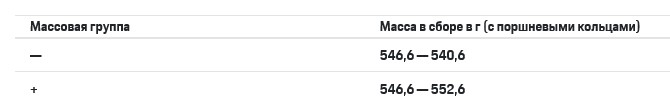 Поршни серийно изготавливаются в двух массовых группах: + и .