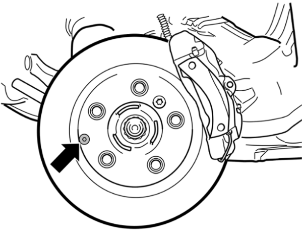 Запорный болт тормозного диска -стрелка-закрывает фиксатор. Положение фиксатора – справа на 3 часа или слева на 9 часов.