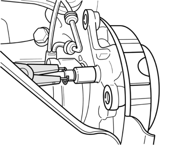 Для различных работ на задней оси, например демонтаж и монтаж корпуса подшипника ступицы, тормозной трос необходимо лишь вывесить, не демонтируя его полностью. Для этого при окончании монтажа можно использовать описание - Демонтаж и монтаж троса стояночного тормоза (сзади) - глава "Отсоединение и крепление"