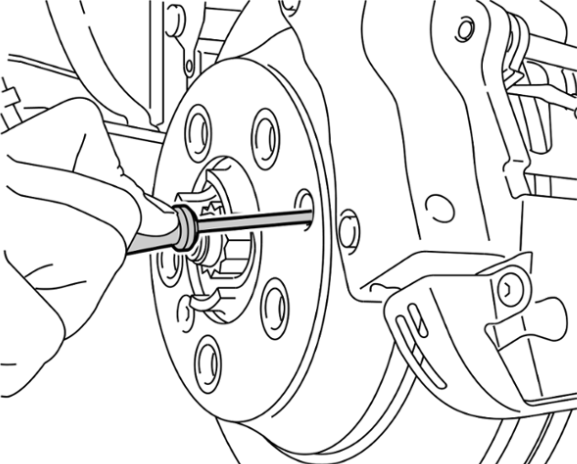 13 Демонтировать тормозной трос. Не ослаблять стопорное кольцо!. Для этого вставить отвертку между втулкой тормозного троса и корпусом подшипника ступицы -см. рис.-.